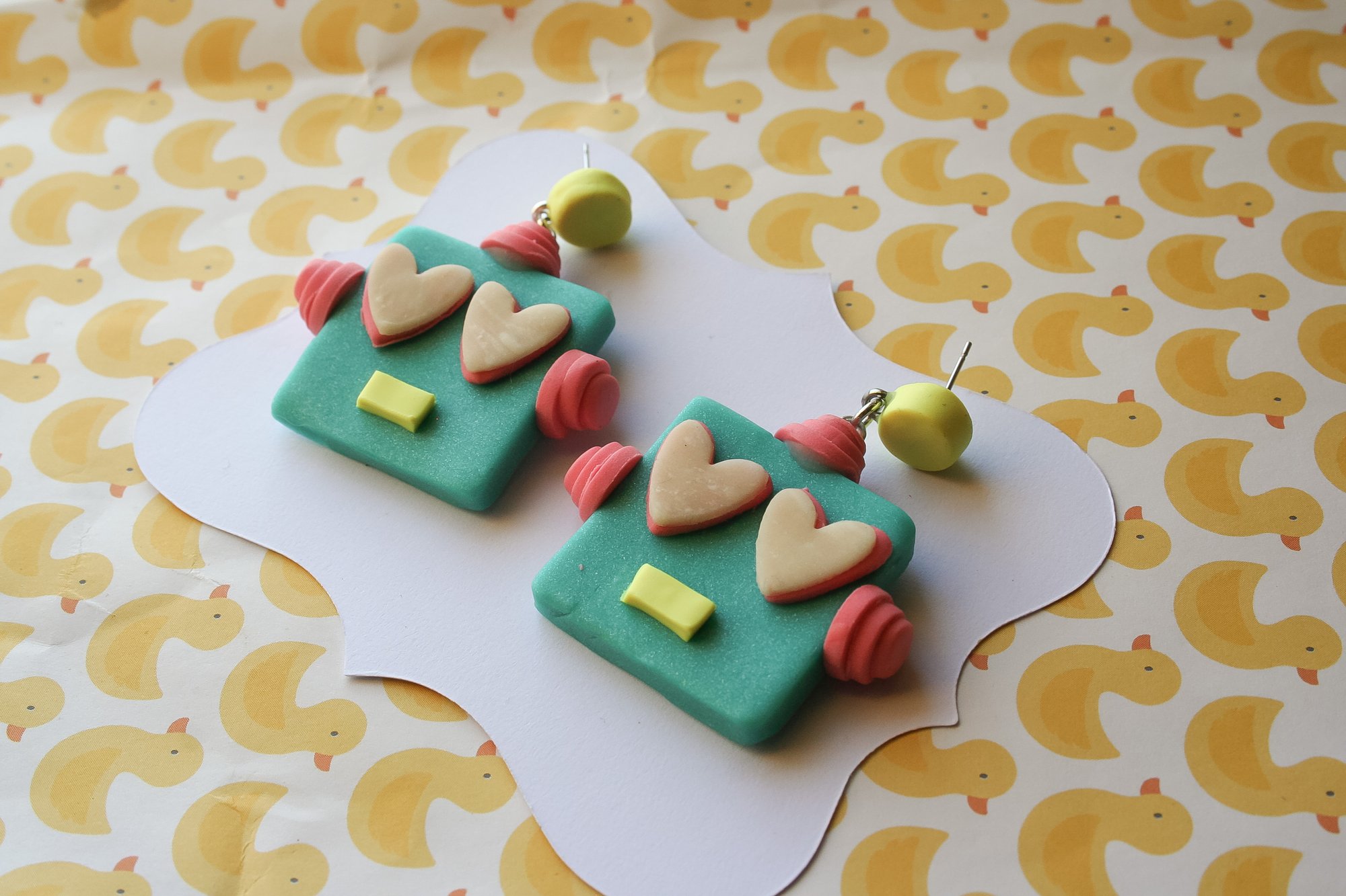 Made with polymer clay, these earrings use nickel free studs and I can replace the studs with clip ons if you leave me a note!